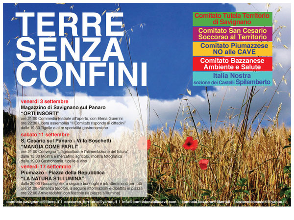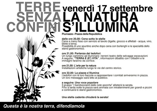 Ancora una volta il comitato piumazzese "NO ALLE CAVE" organizza un evento in Piazza della repubblica per informare i cittadini ed animare una sera di fine estate.