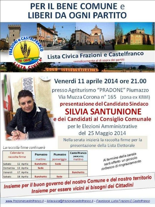 PRESENTAZIONE DEL CANDIDATO SINDACO SILVIA SANTUNIONE E DEI CANDIDATI AL CONSIGLIO COMUNALE