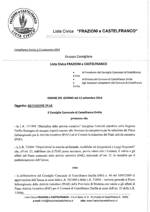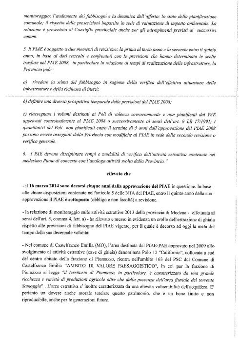 Il piano infraregionale delle attività estrattive (PIAE) della provincia di Modena che regola le attività estrattive DEVE essere sottoposto a revisione dopo 5 anni dalla approvazione.