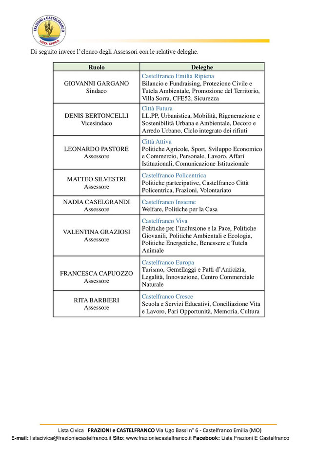 Lista Civica Frazioni e Castelfranco. Per cercare di arrivare ad un risultato nel rispetto dei cittadini che ci hanno dato la loro fiducia: questo è il nostro modo di onorare il ruolo che
