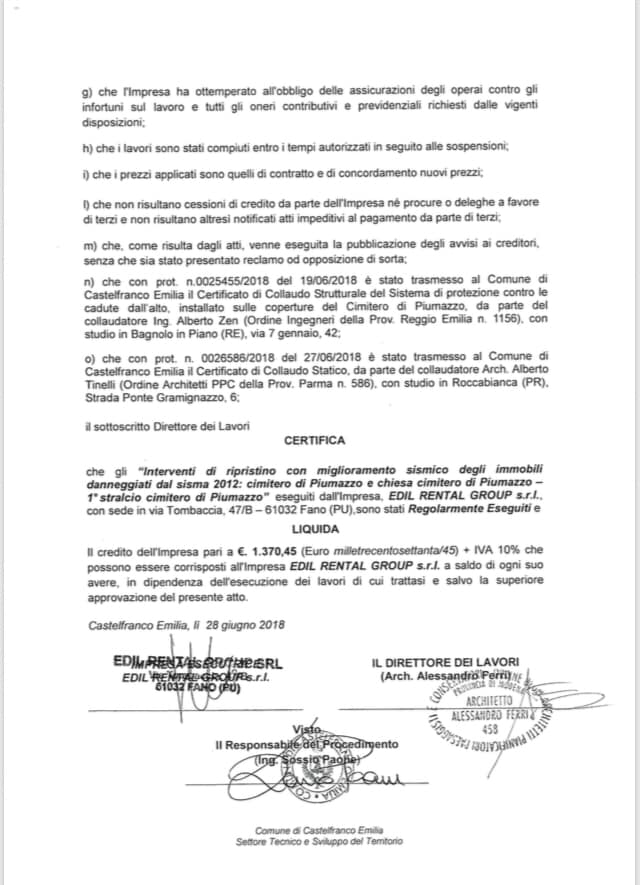 collaudato a giugno 2018.