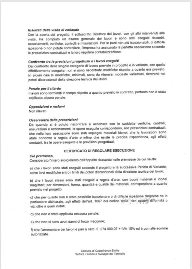 Come sono stati fatti i collaudi dei lavori?