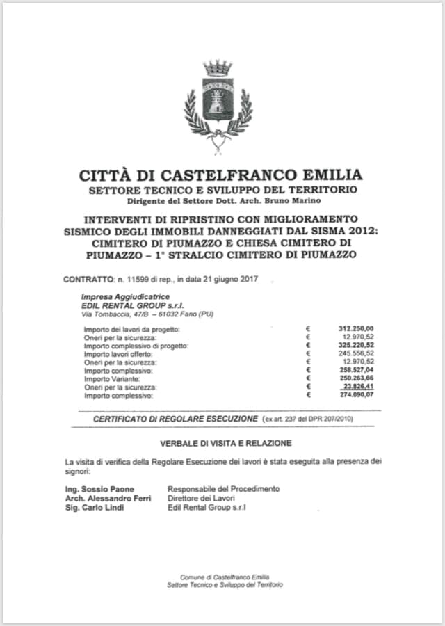 Il cimitero di Piumazzo é stato oggetto di intervento di ristrutturazione con miglioramento sismico