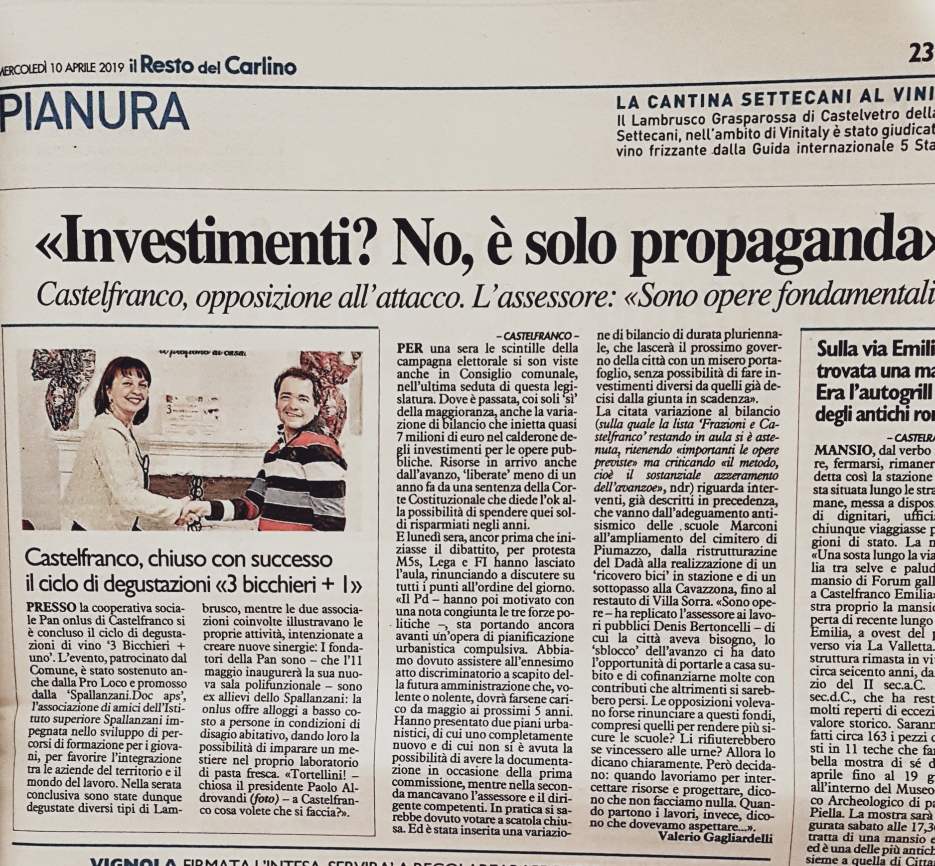 Questa sera, 8 aprile 2019, nella sala consiliare del Municipio di Castelfranco Emilia si è svolto l’ultimo Consiglio Comunale di quest’anno amministrativo prima delle elezioni comunali del 26 maggio.