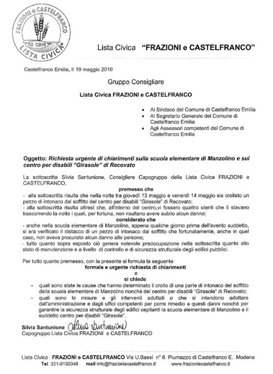 20. maggio 2010 CROLLI A MANZOLINO E RECOVATO Richiesta chiarimenti scuola elementare Documento Adobe Acrobat 68.7 KB Download tagPlaceholderTag: