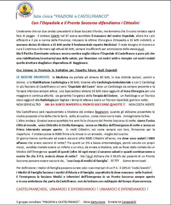 03. agosto 2010 LA VERITA' SU OSPEDALE E PRONTO SOCCORSO A CASTELFRANCO ospedale e pronto soccorso per i cittadi Formato JPG 544.9 KB Download tagPlaceholderTag: