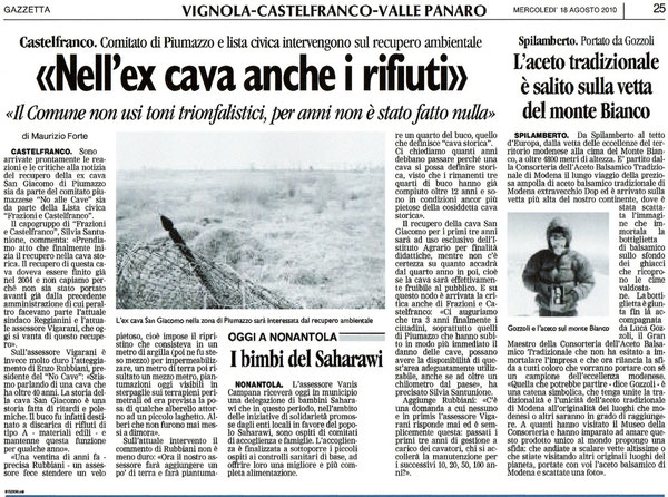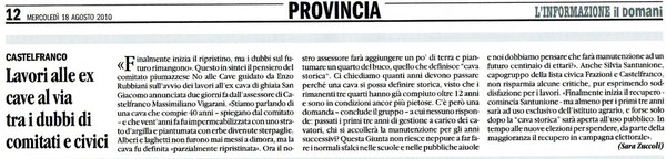 18. agosto 2010 REPLICHE AL COMUNICATO SULL'INIZIO DEI LAVORI DI RECUPERO DELLA CAVA SAN GIACOMO gazzetta 18 agosto.jpg Formato JPG 2.3 MB Download informazione 18 agosto.jpg Formato JPG 621.7 KB Download tagPlaceholderTag: