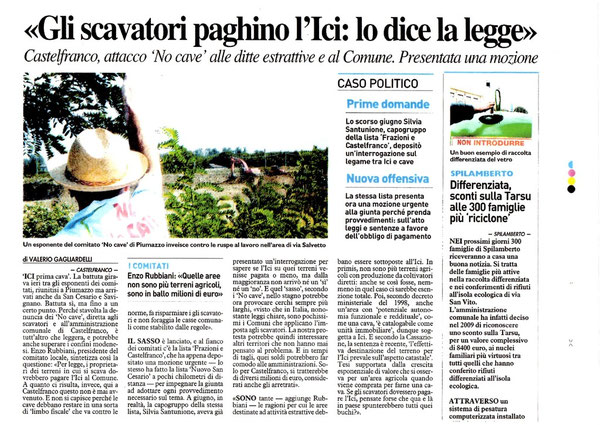 Comunicato stampa del Comitato Piumazzese NO alle CAVE e della Lista Civica FRAZIONI e CASTELFRANCO 30 ottobre 2010