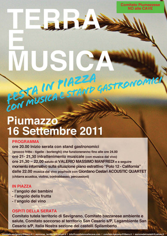 Si rinnova per il 4° anno consecutivo l'appuntamento settembrino in piazza del comitato piumazzese no alle cave,come sempre ricco di proposte coinvolgenti.
