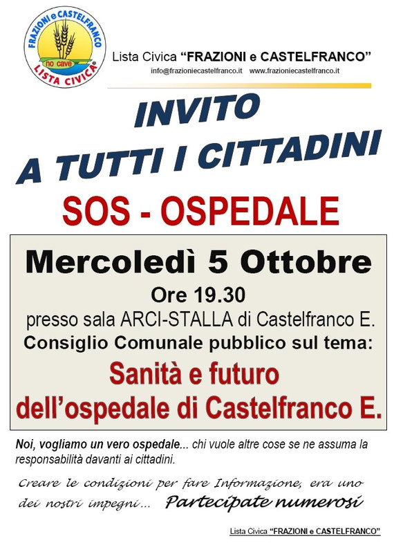 02. ottobre 2011 LA VERITA' SULL'OSPEDALE DI CASTELFRANCO EMILIA tagPlaceholderTag: Scrivi commento Commenti: 0