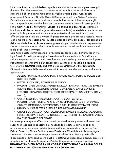 CONTINUA LA RACCOLTA PRO TERREMOTATI