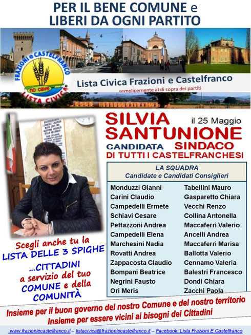 23. aprile 2014 SILVIA SANTUNIONE CANDIDATO SINDACO E LA SQUADRA DEI CANDIDATI CONSIGLIERI tagPlaceholderTag: Scrivi commento Commenti: 0