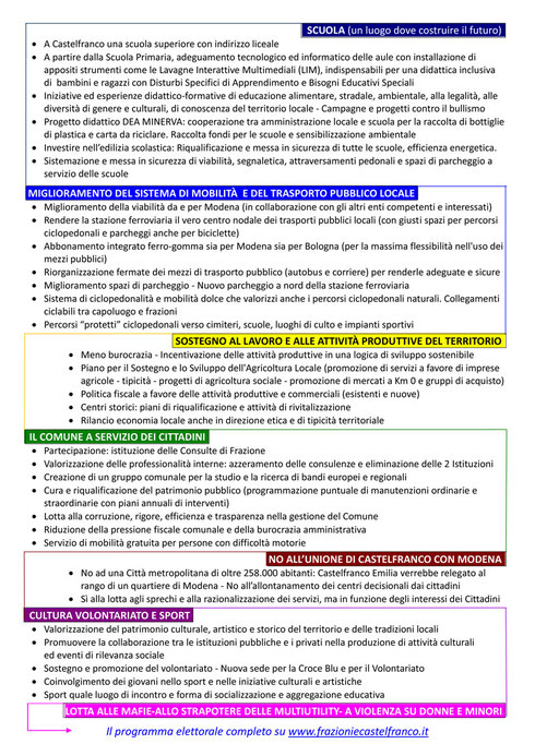14. maggio 2014 Vota Lista Civica Frazioni e Castelfranco Silvia Santunione sindaco di tutti i castelfranchesi tagPlaceholderTag: Scrivi commento Commenti: 1 #1 straniero (mercoledì, 21 maggio 2014 16:58) per i stranieri che saranno italiani di domani cosa hai pensato per loro ho letto il tuo programma non esistono!!!??????!!!!!!!??????!!!!!!!!!!!!!!!!!!!?????!!!! oggi sono straniero ma domani saro italiano