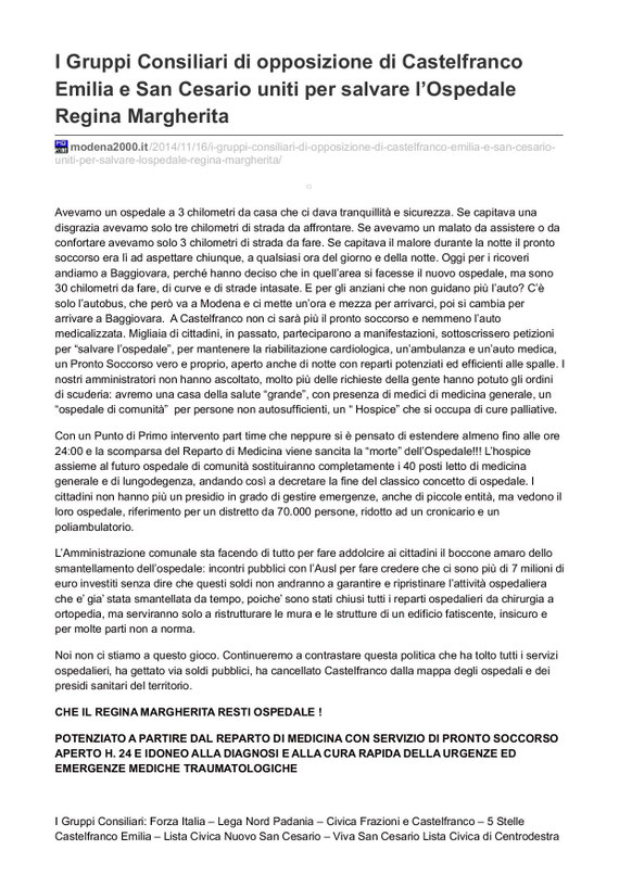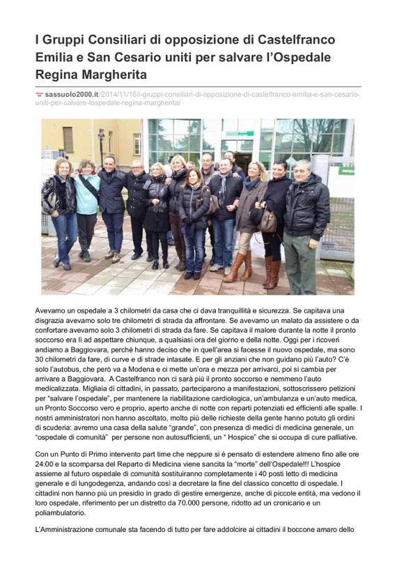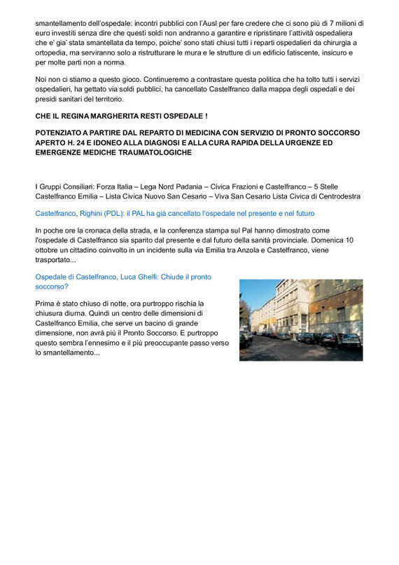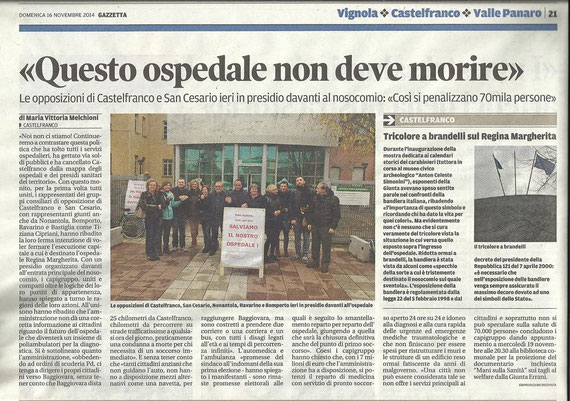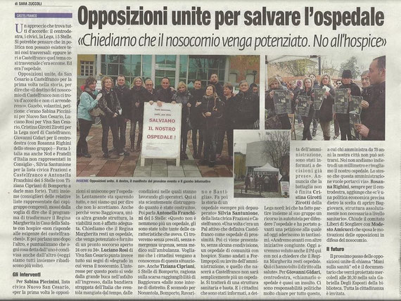 LE OPPOSIZIONI DI CASTELFRANCO E SAN CESARIO UNITE PER SALVARE L'OSPEDALE REGINA MARGHERITA DI CASTELFRANCO