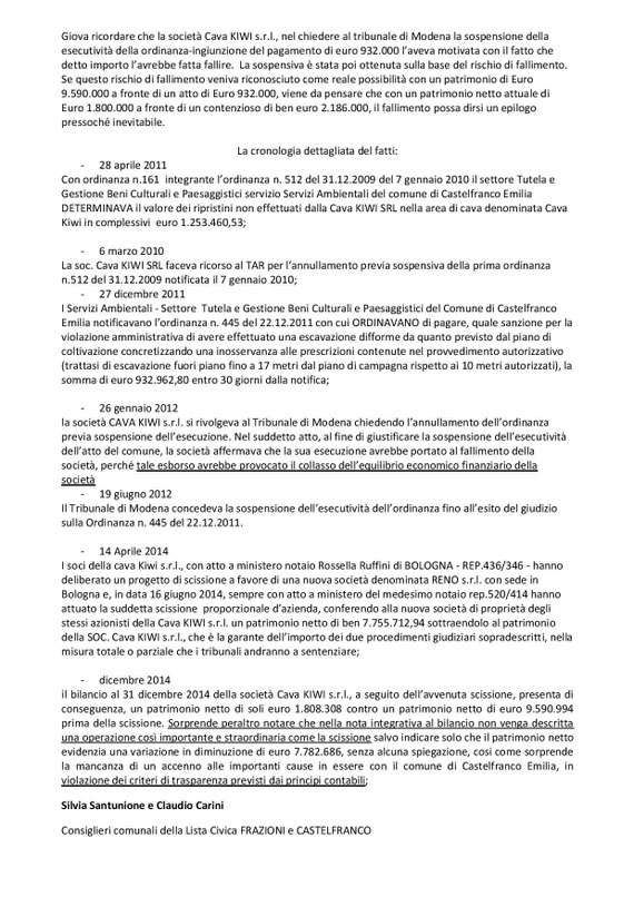 15. gennaio 2016 COMUNICATO STAMPA - OPERAZIONE FINANZIARIA DI UN CAVATORE. Comunicato in formato PDF Comunicato stampa cava kiwi Piumazzo.pdf Documento Adobe Acrobat 366.8 KB Download tagPlaceholderTag: Scrivi commento Commenti: 0