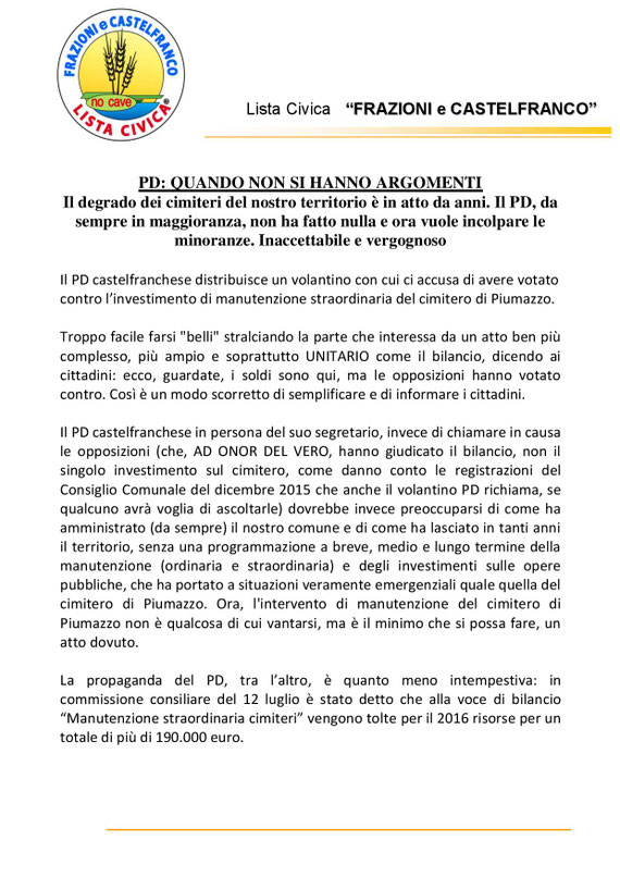 23. luglio 2016 POLEMICA PRTESTUOSA DEL PD NEI NOSTRI CONFRONTI tagPlaceholderTag: Scrivi commento Commenti: 0