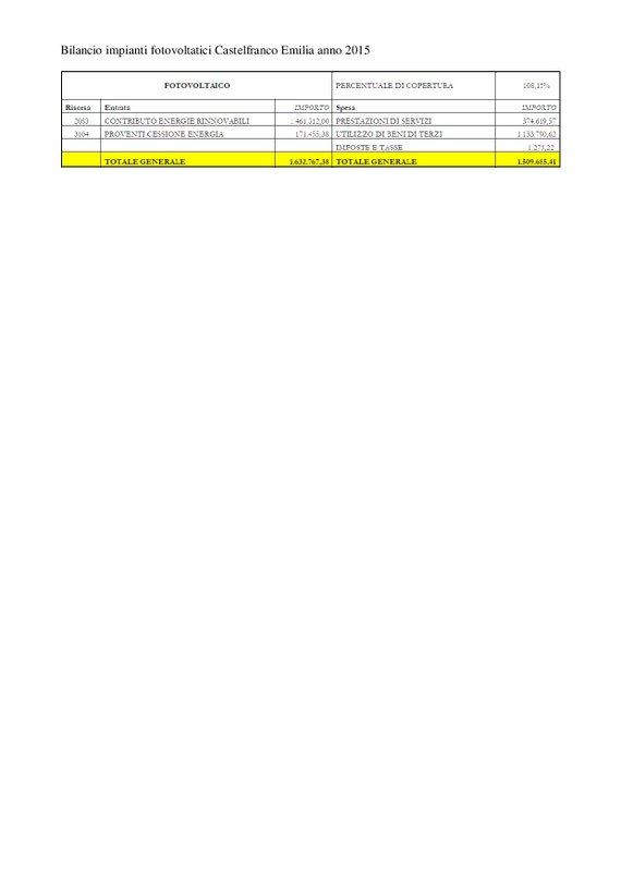 18. novembre 2016 COMUNICATO STAMPA IMPIANTO FOTOVOLTAICO DEL COMUNE, C'E' IL RISCHIO CHE PRODUCA PERDITA ECONOMICA tagPlaceholderTag: Scrivi commento Commenti: 0