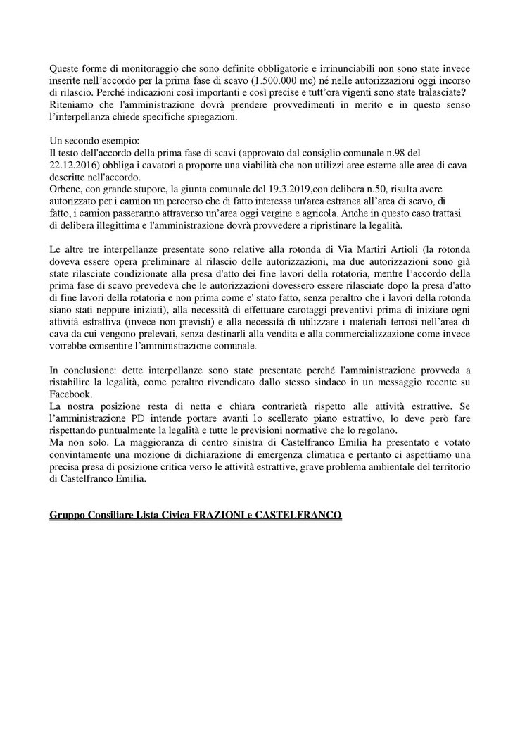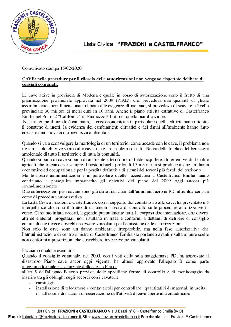 17. febbraio 2020 COMUNICATO STAMPA CAVE: nelle procedure per il rilascio delle autorizzazioni non vengono rispettate delibere di consigli comunali. Comunicato stampa attività estrattive 15 Documento Adobe Acrobat 175.6 KB Download tagPlaceholderTag: