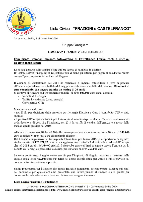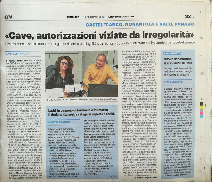 COMUNICATO STAMPA CONGIUNTO DI COMITATO PIUMAZZESE NO ALLE CAVE e LISTA CIVICA FRAZIONI e CASTELFRANCO