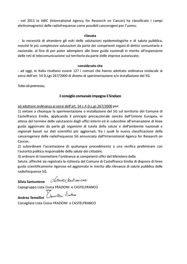 La mozione è stata discussa nel consiglio comunale del 25/06/2020 ed NON è stata approvata