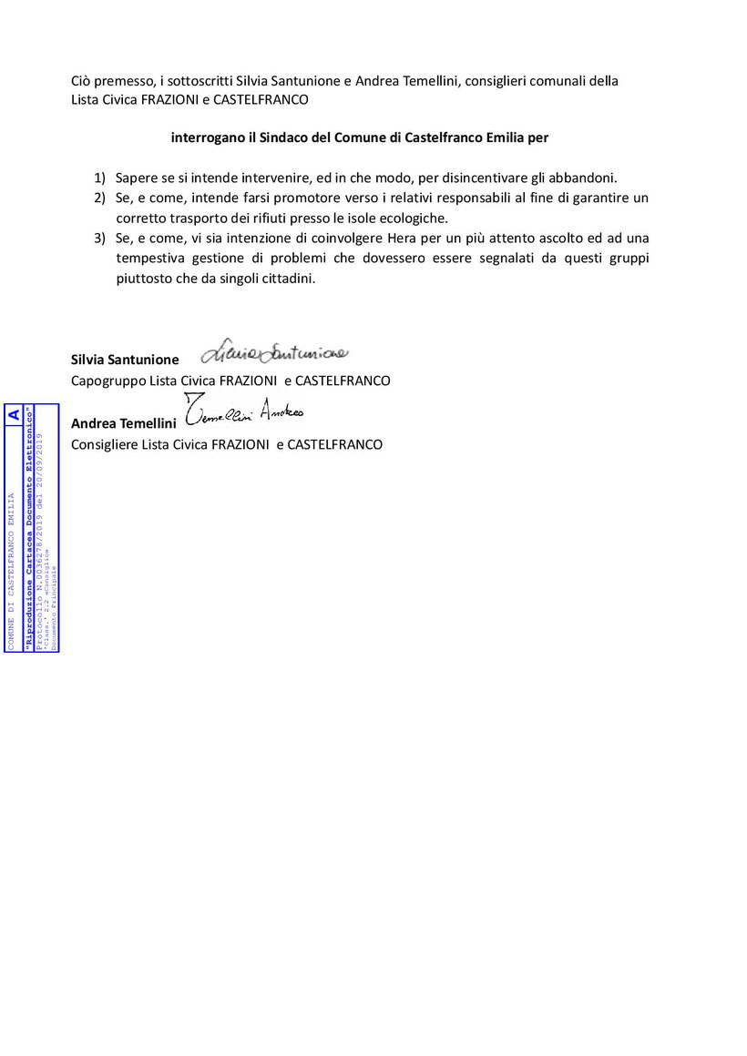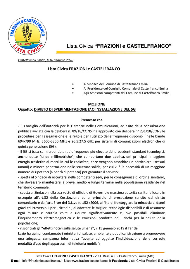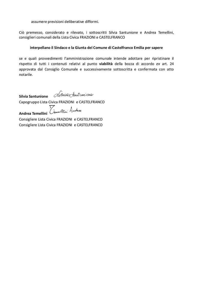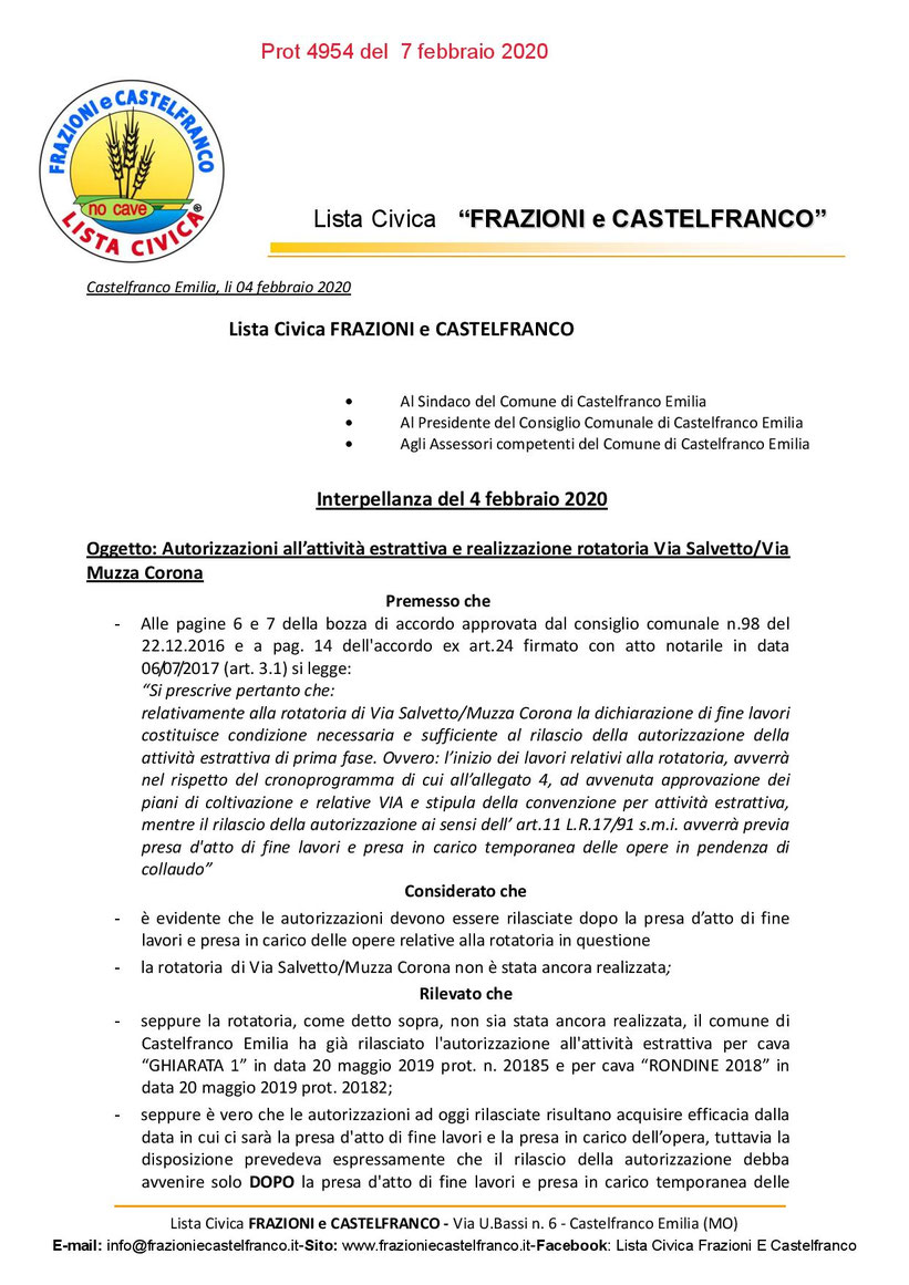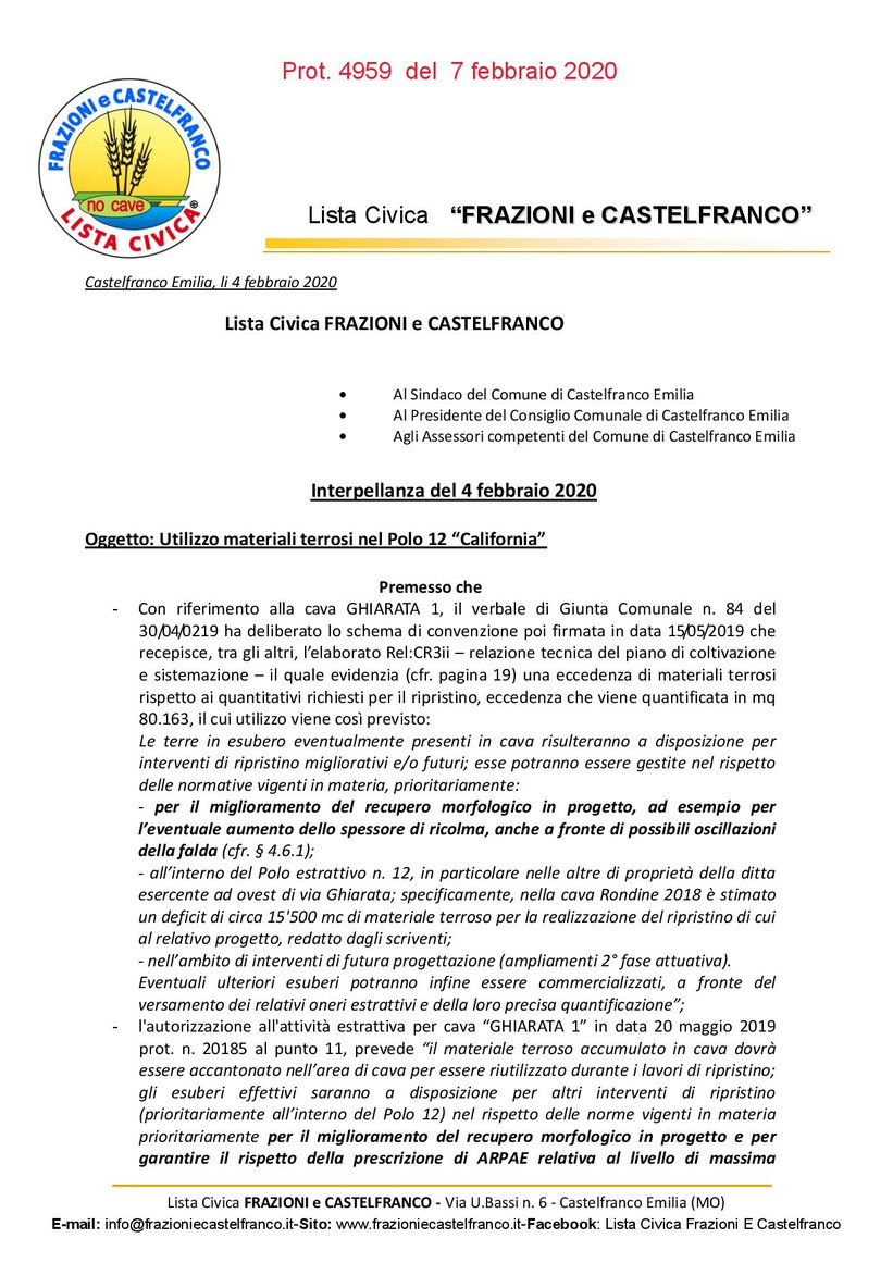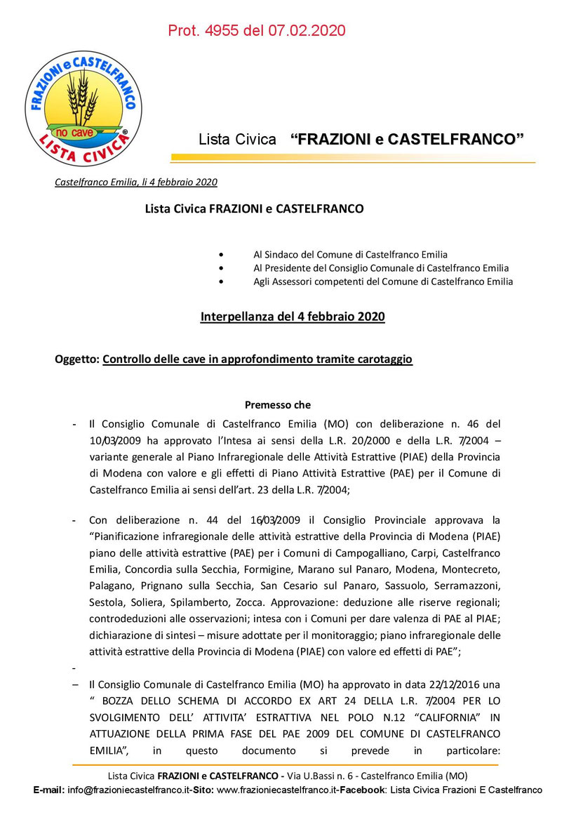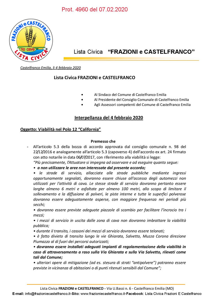 Il 4 febbraio 2020 la nostra lista civica ha presentato 5 interpellanze relative a: