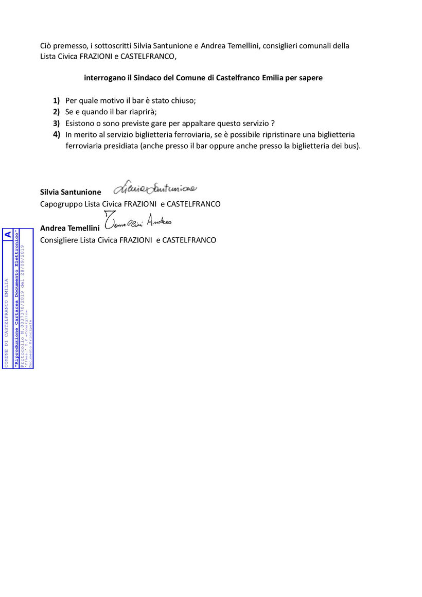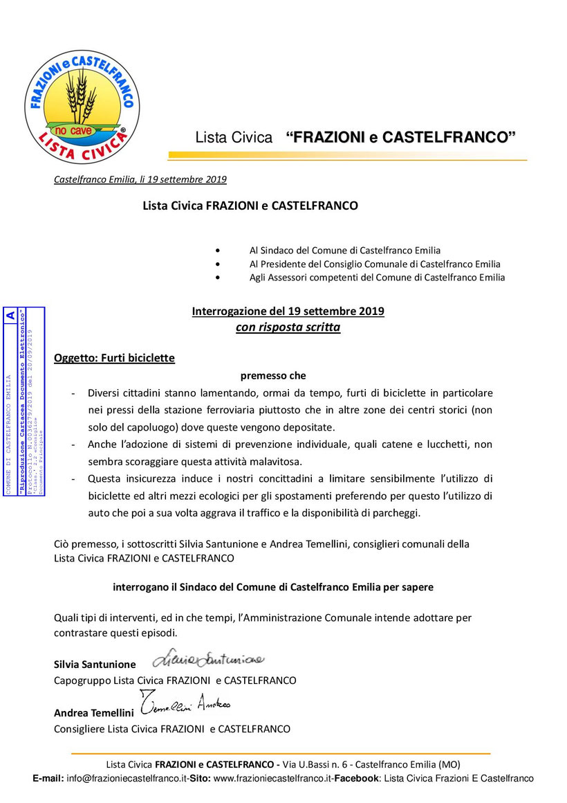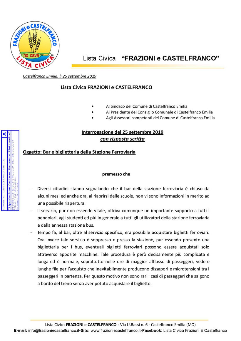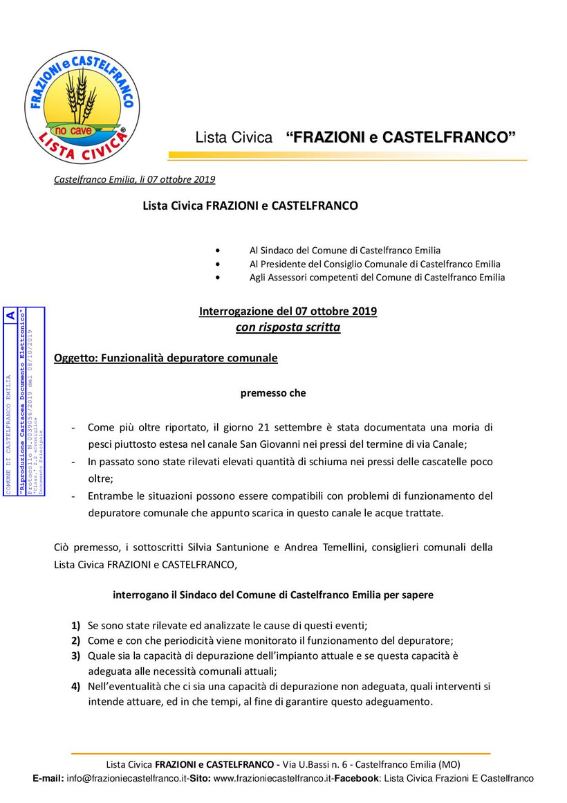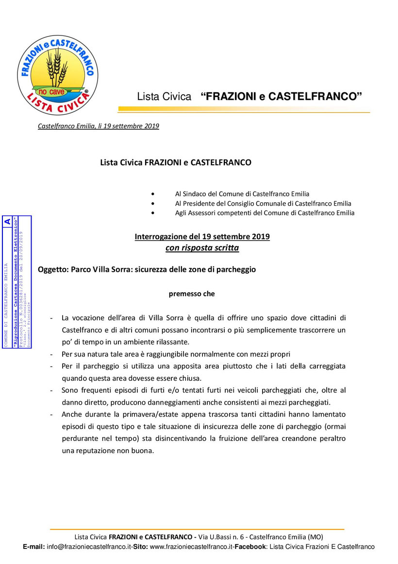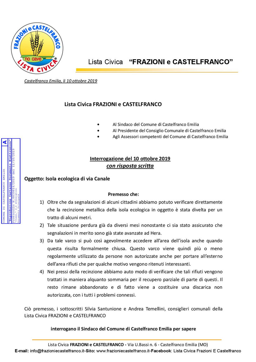 Il 4 febbraio 2020 la nostra lista civica ha presentato 5 interpellanze relative a:
