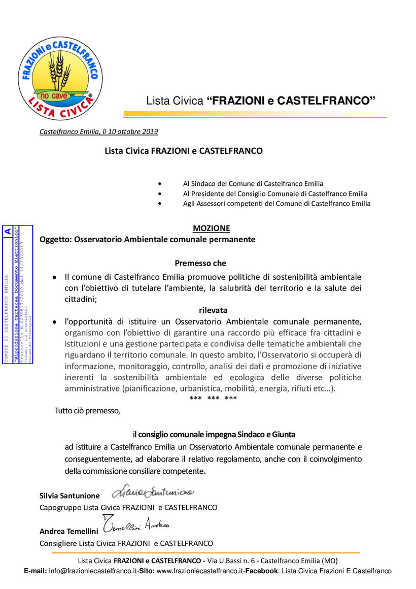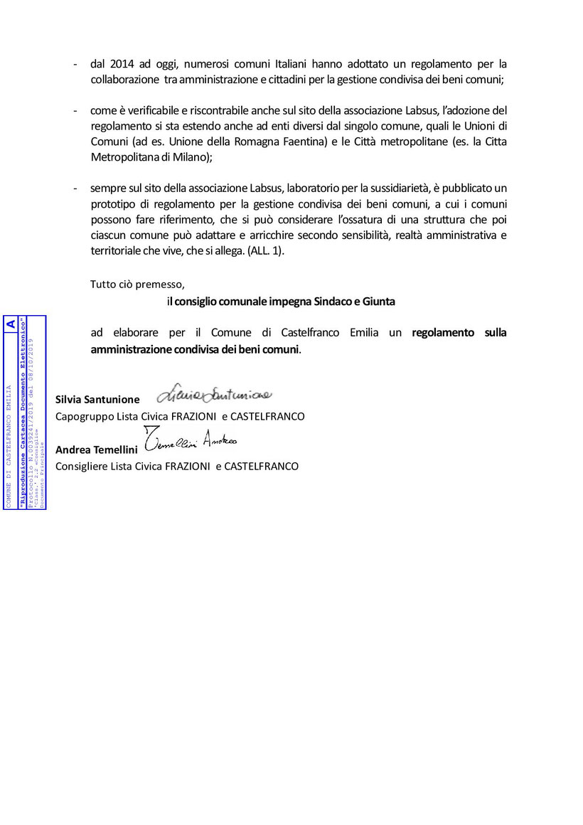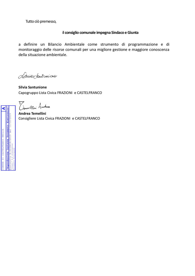 La mozione è stata approvata dal consiglio comunale il 30/10/2019