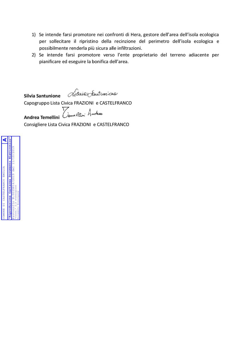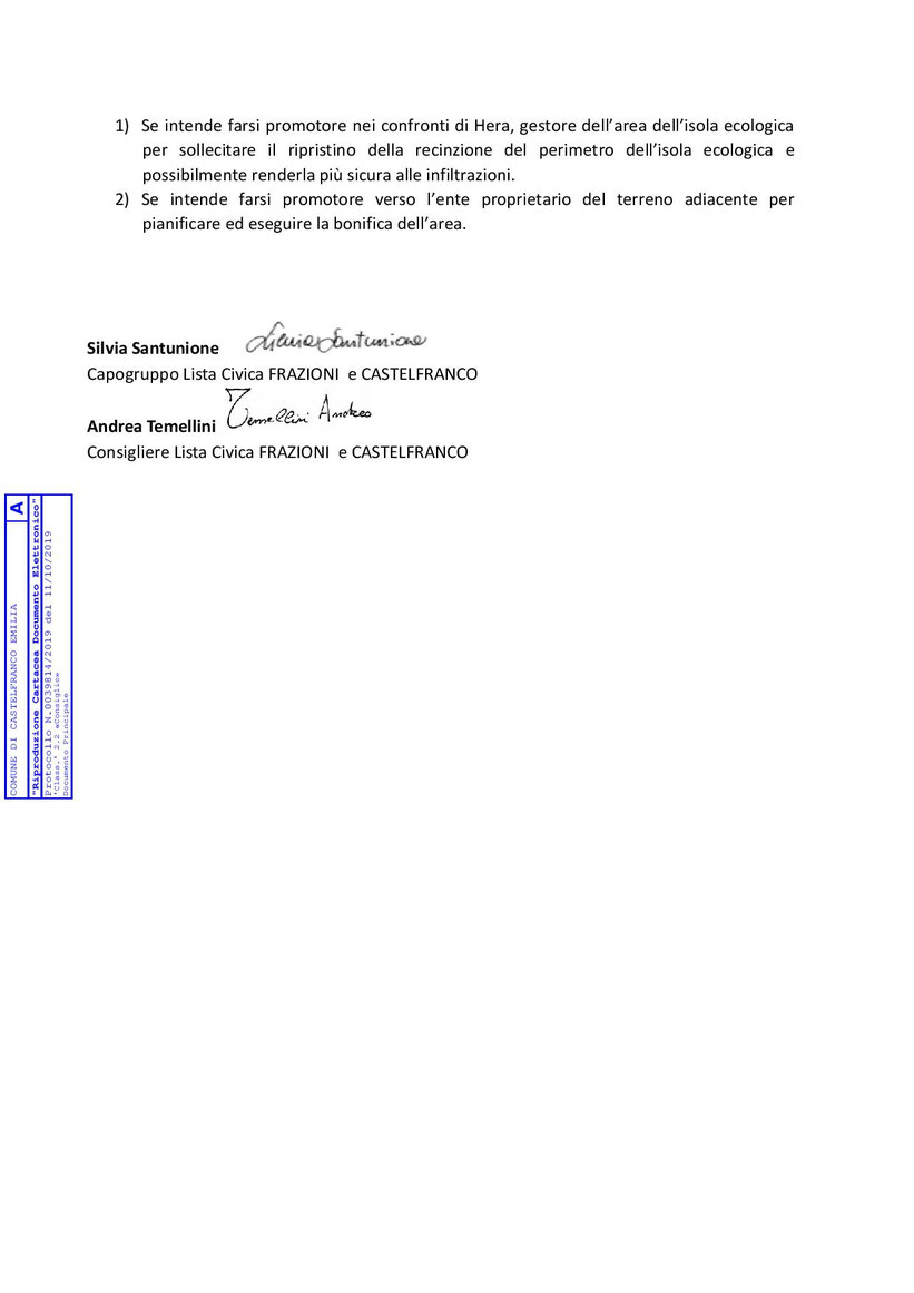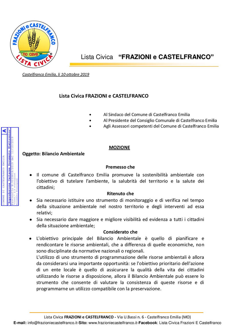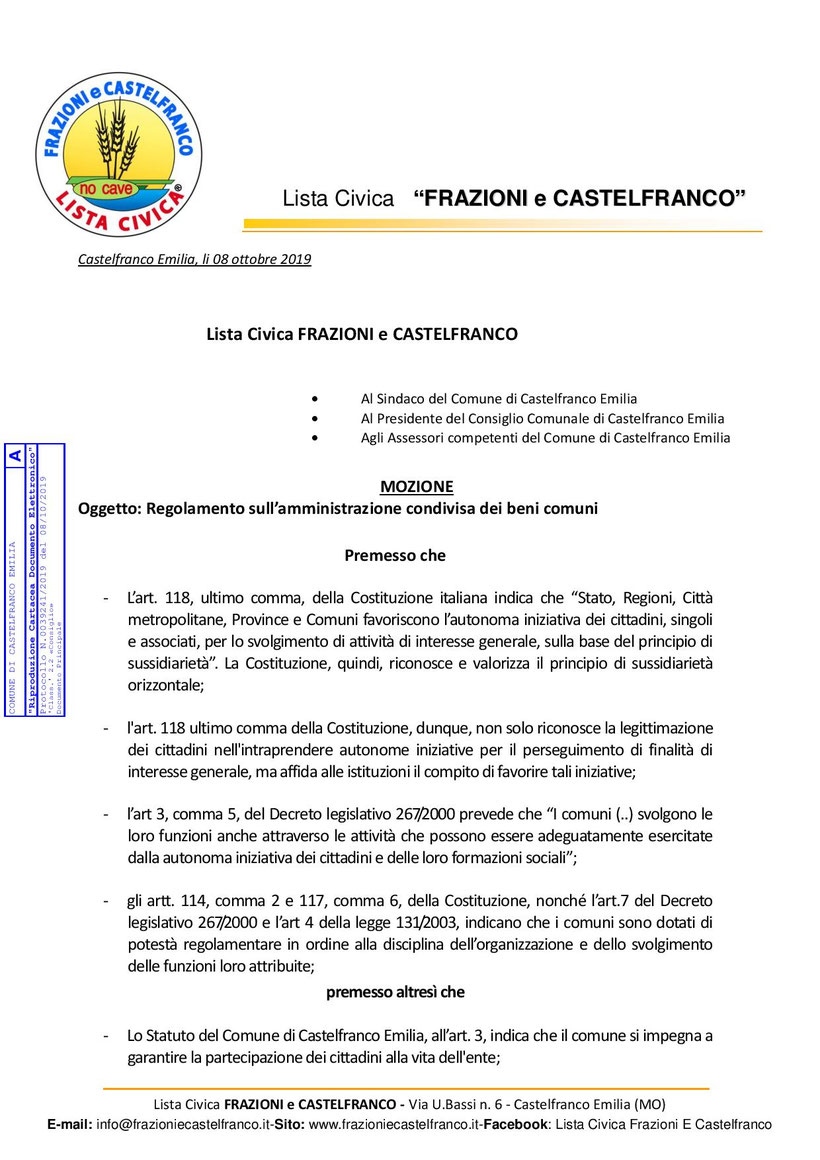 La mozione è stata approvata dal consiglio comunale il 30/10/2019