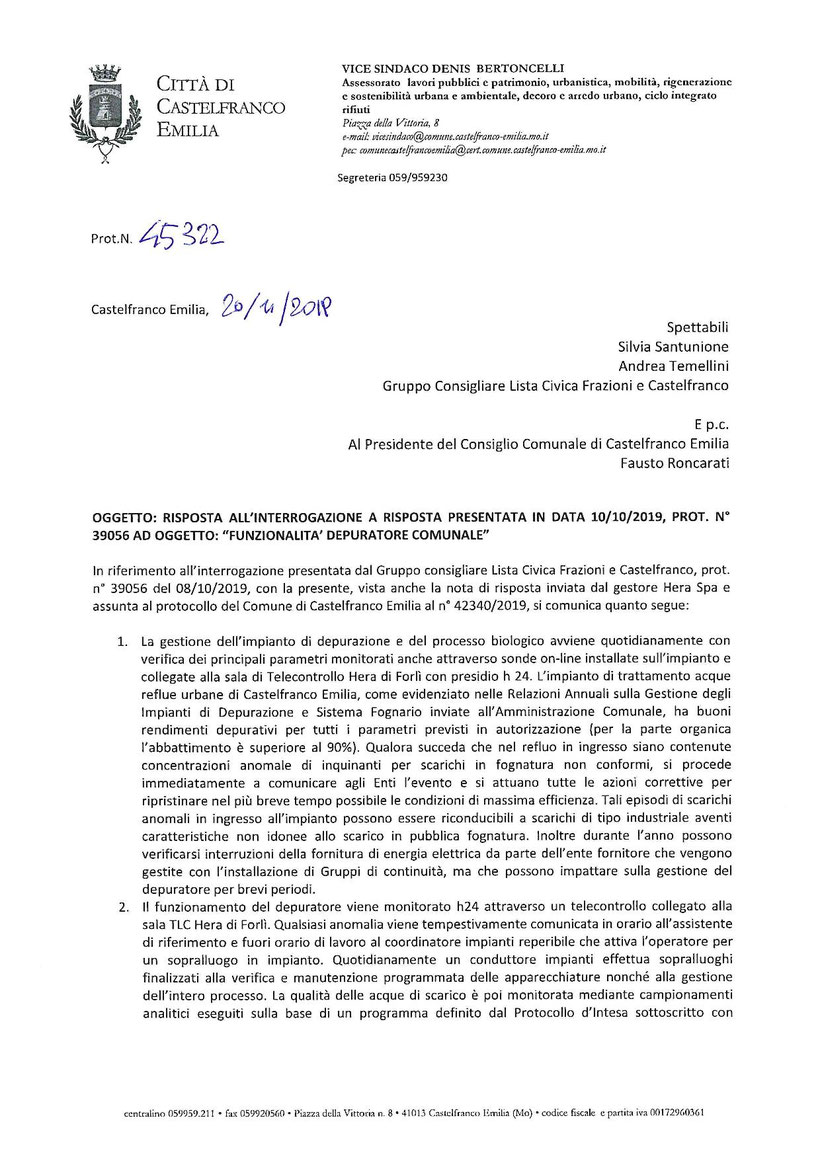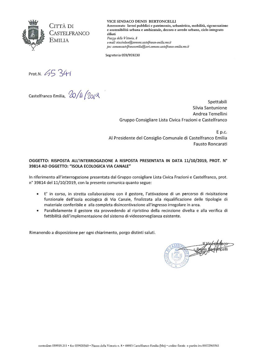 Le interpellanze sono state discusse nel consiglio comunale 15/05/2020.