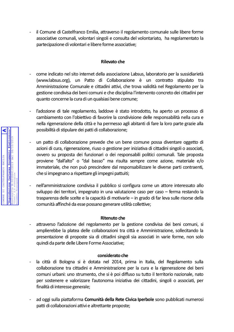 La mozione è stata approvata dal consiglio comunale il 19/12/2019