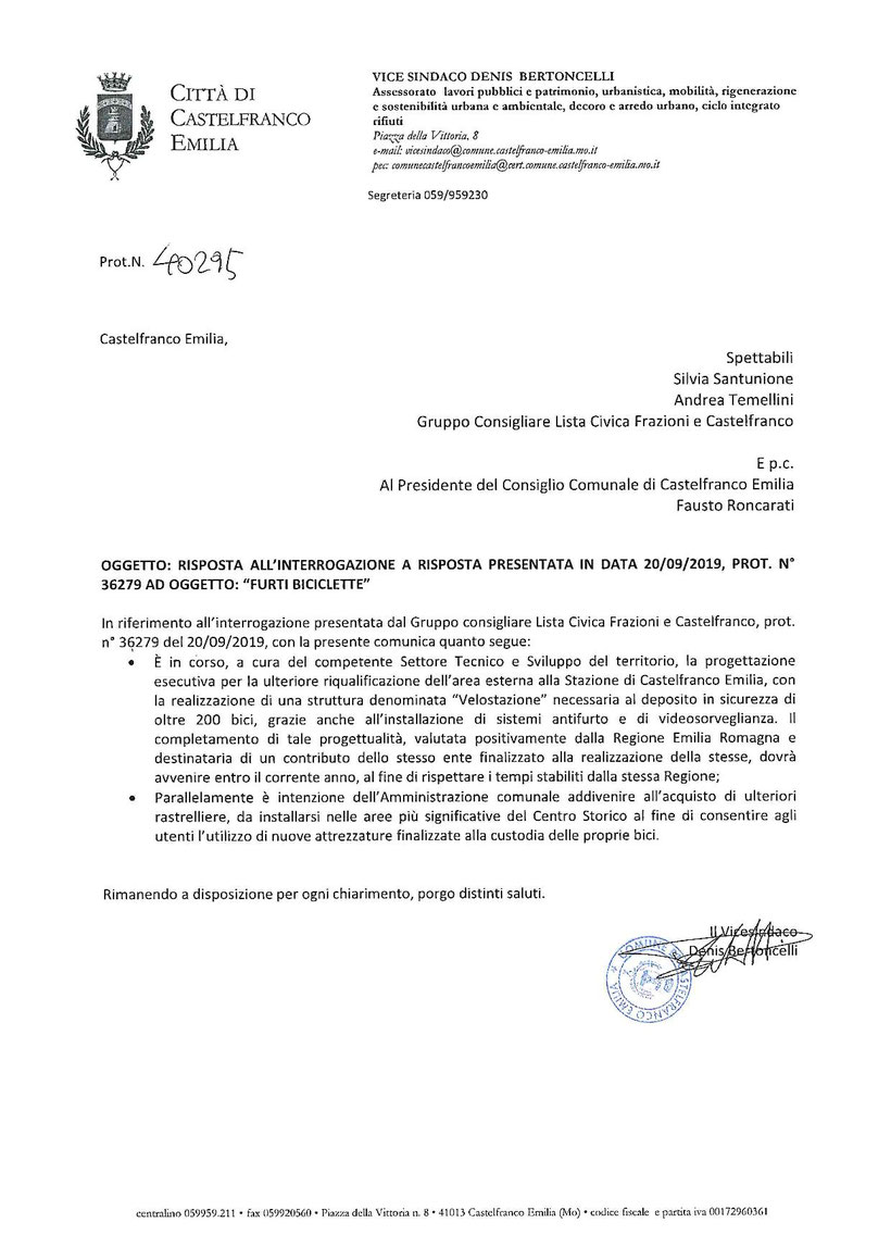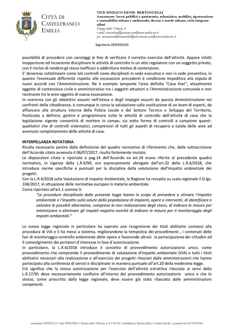 Riportiamo di seguito la risposta dell'assessore Bertoncelli ai 5 interpellanze sopra riportati relative a: