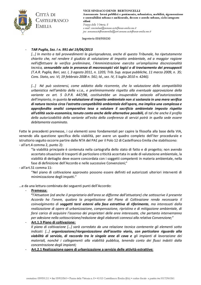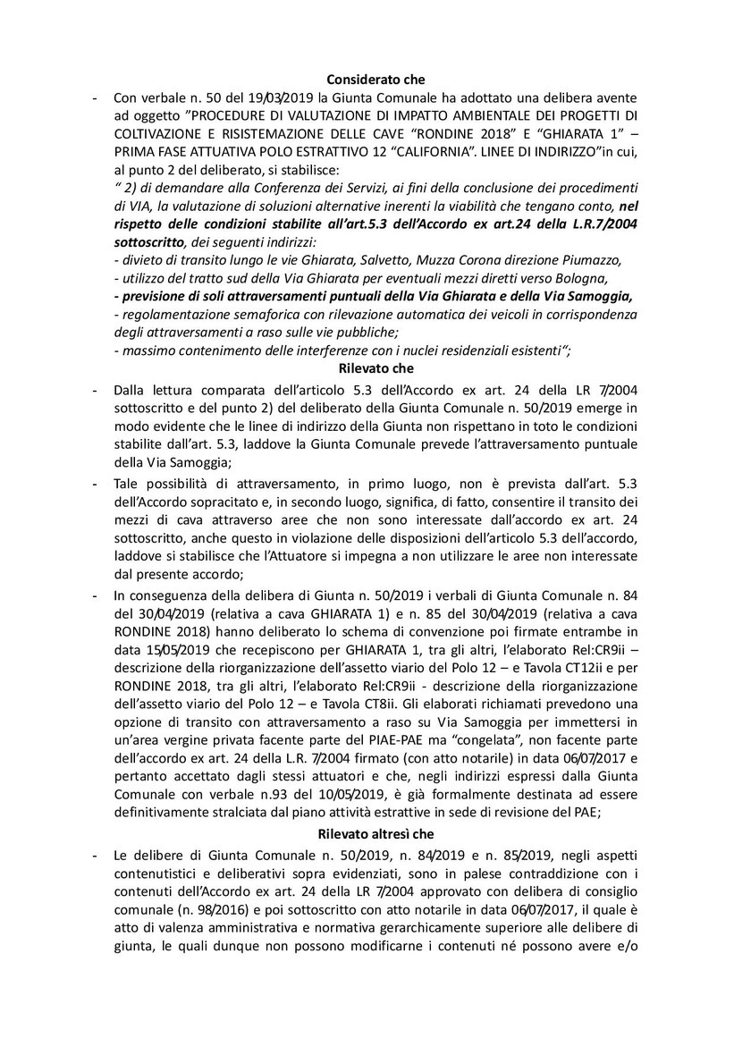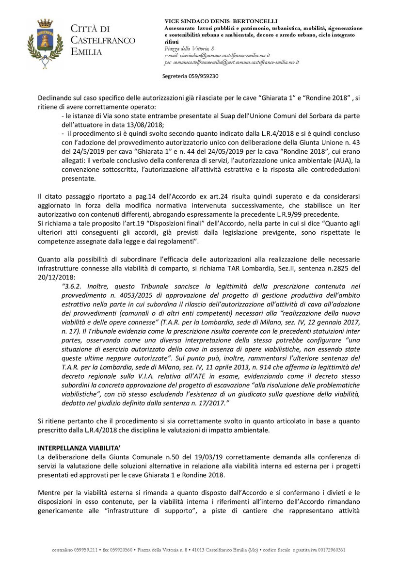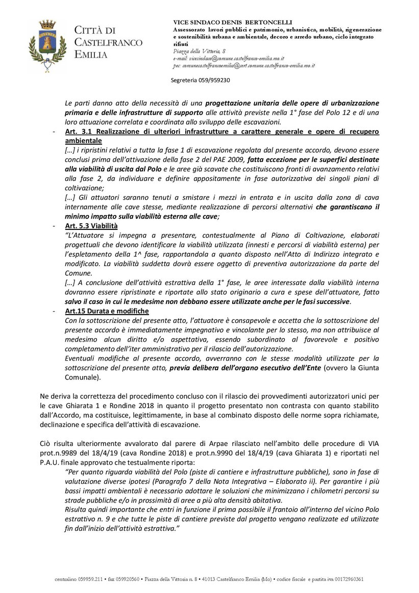 - autorizzazioni allo scavo prima dell'esecuzione della rotatoria di via Via Salvetto/Muzza Corona come prescritto da accordo approvato in consiglio comunale,