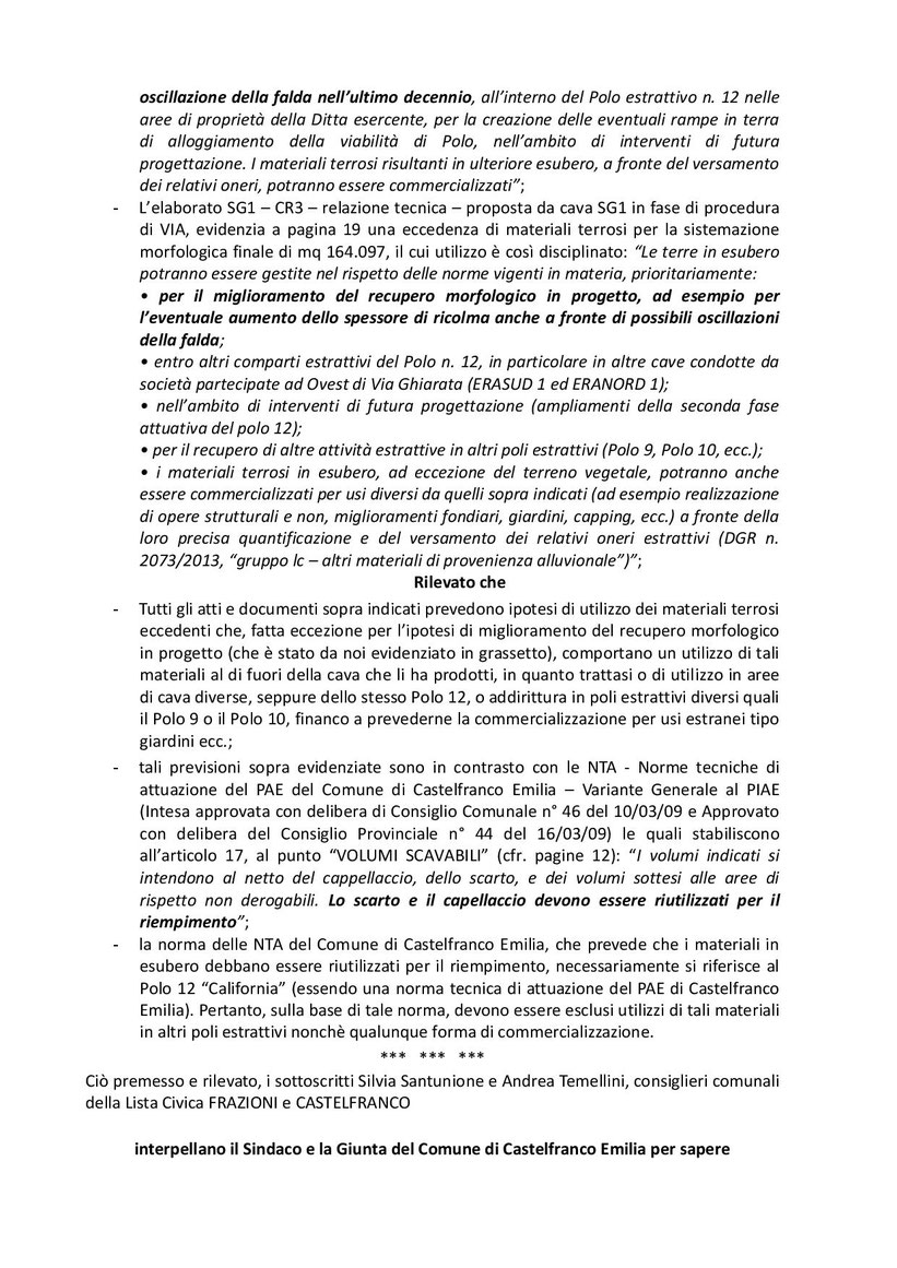 - autorizzazione alla vendita della terra presente in cava, oltre che della ghiaia