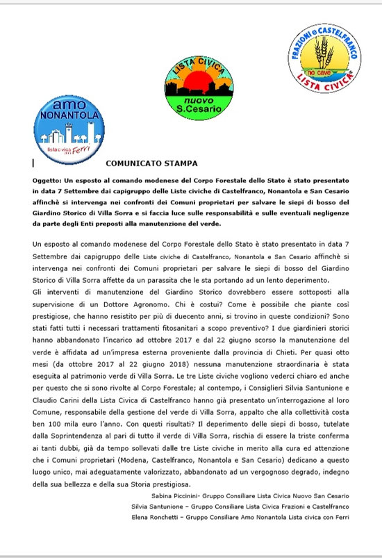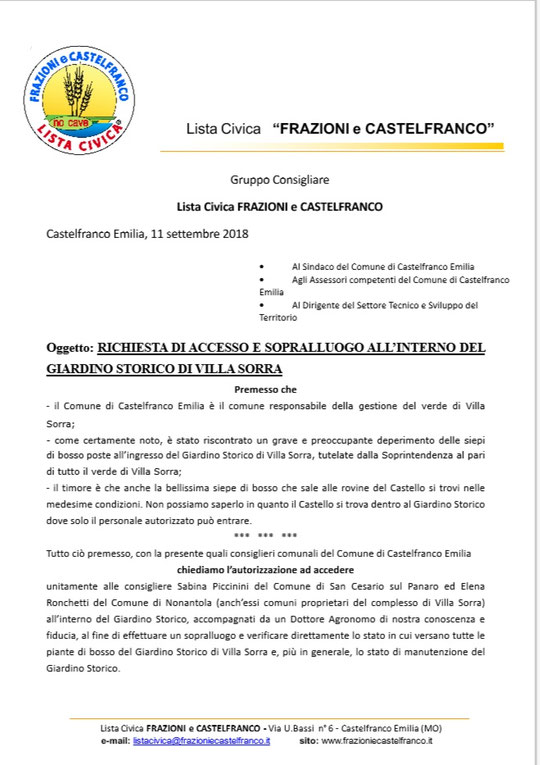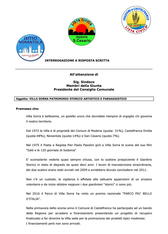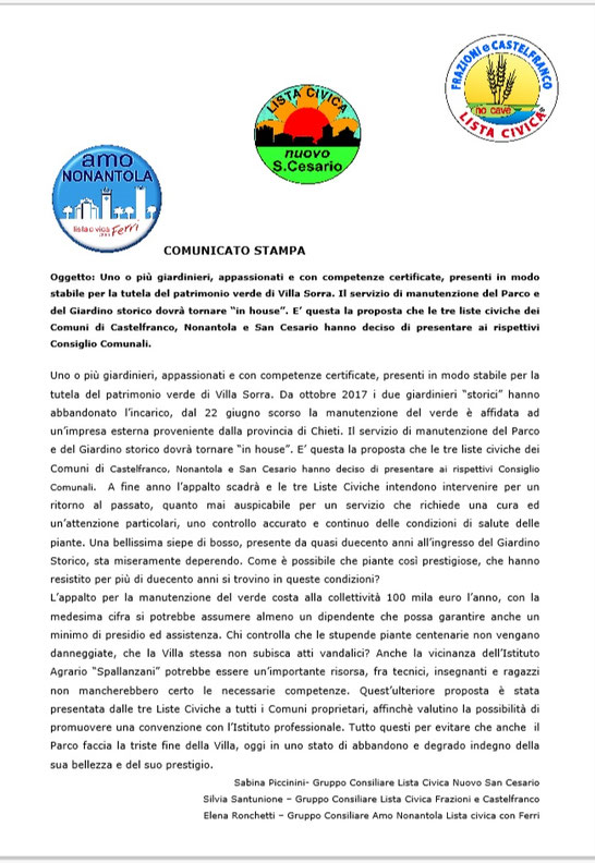 Liste Civiche unite per Villa Sorra di nuovo al lavoro #listacivicafrazioniecastelfranco #perilbenecomune